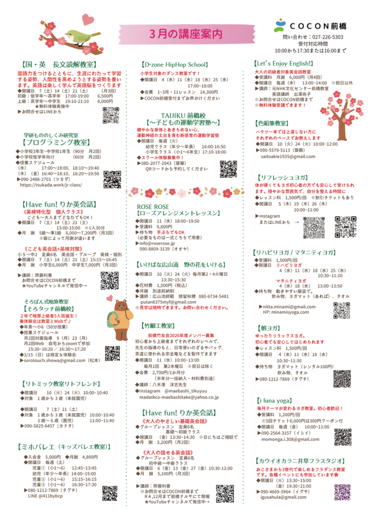 2026年もCOCON前橋の各講座をよろしくお願いいたします!